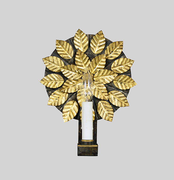 Inspired by the Liberty Tree lanterns of 1776, this round back sconce features two rows of gilded Gold Leaf.