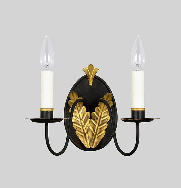 Designed to coordinate with Acanthus Leaf Chandelier, this double arm sconce is delicately hand-gilded with Gold Leaf.