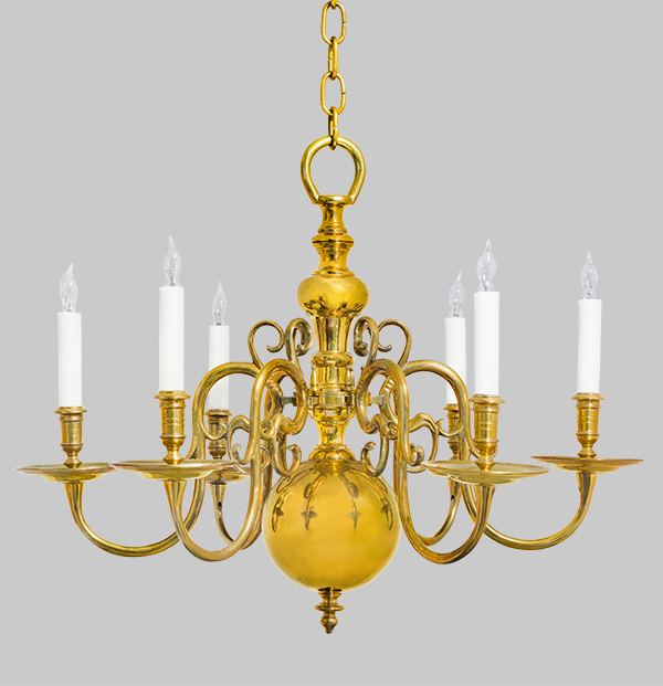A timeless Dutch classic, this six-arm chandelier is hand-assembled from parts created using the age-old technique of lost wax casting – a process that captures the style and old world craftsmanship appropriate to the period.
