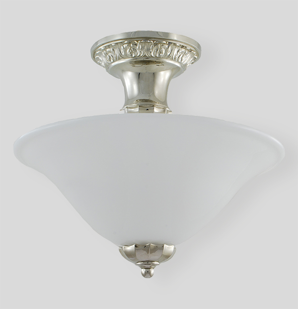 A detailed cast brass canopy and finial highlight the fine workmanship of this flush mount fixture.