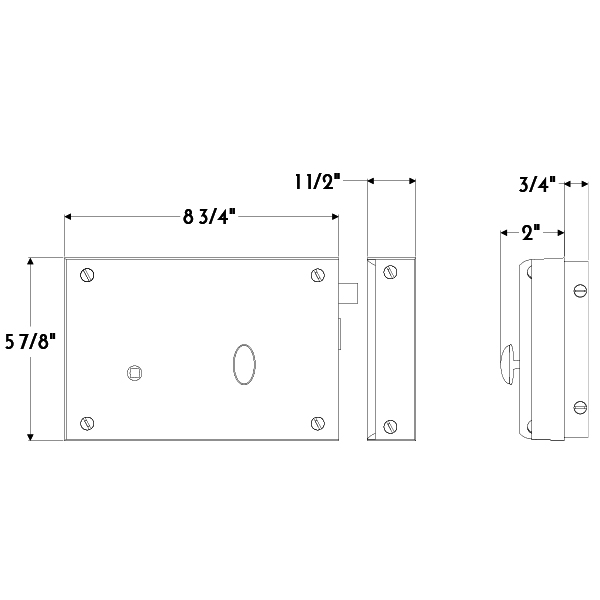 Large cast brass horizontal rim lock with turned brass thumb turn.