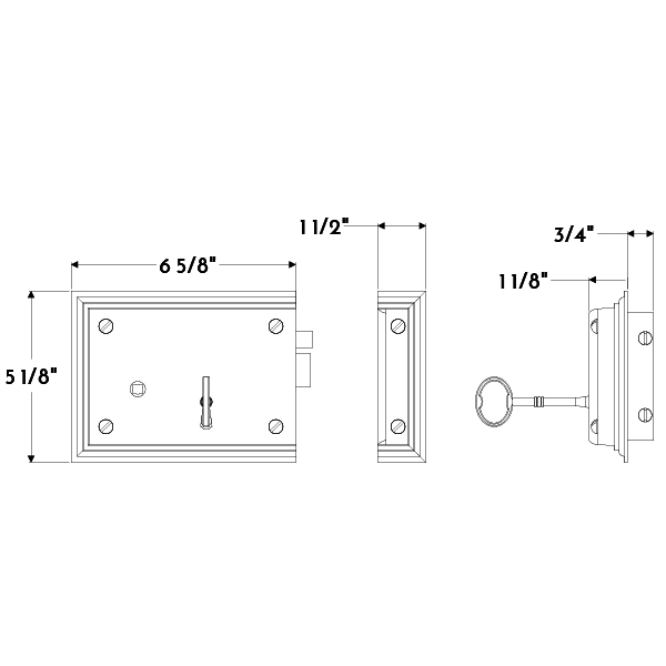 Small molded cast brass horizontal rim lock.