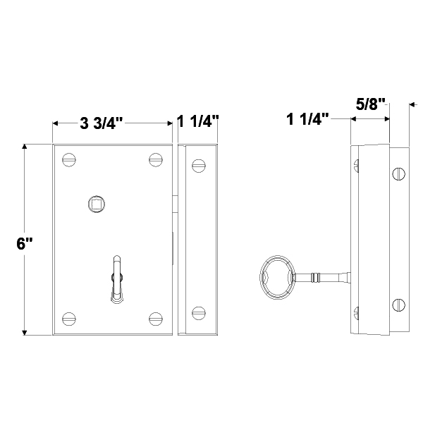 Small cast brass vertical rim lock.