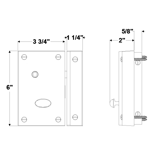 Small cast brass vertical rim lock with turned brass thumb turn.
