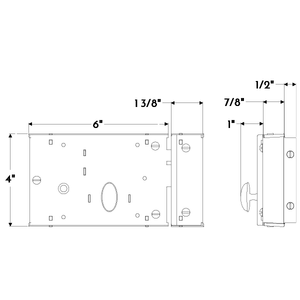 Small forged iron horizontal rim lock with thumb turn and keeper.