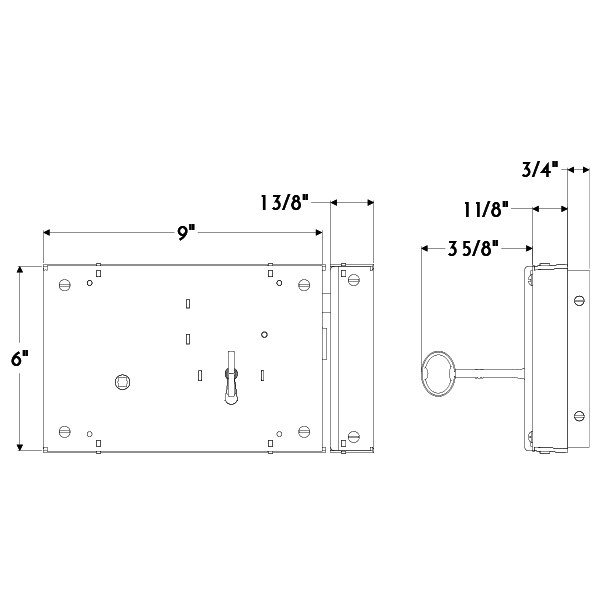 Large forged iron horizontal rim lock and keeper.