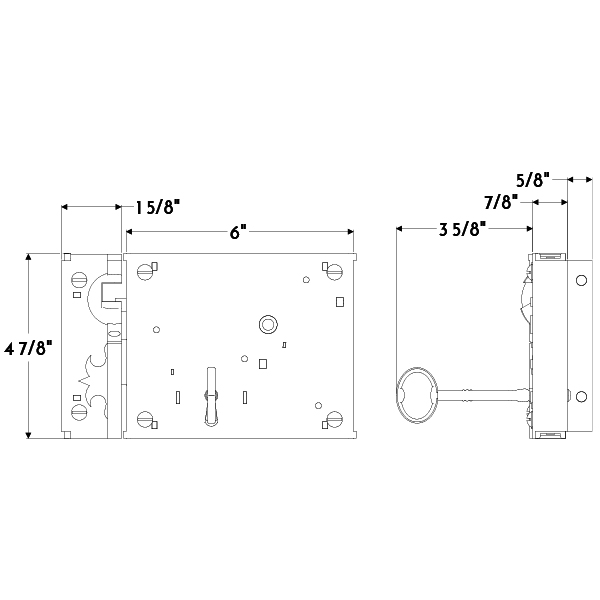 Small forged iron horizontal rim lock and keeper.