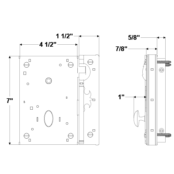 Forged iron vertical carpenter lock with turned thumb turn and keeper.