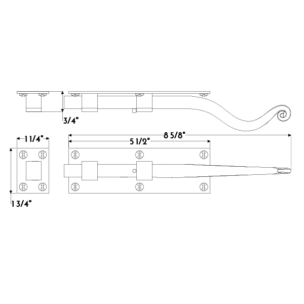 Forged iron rattail cane bolt and keeper.