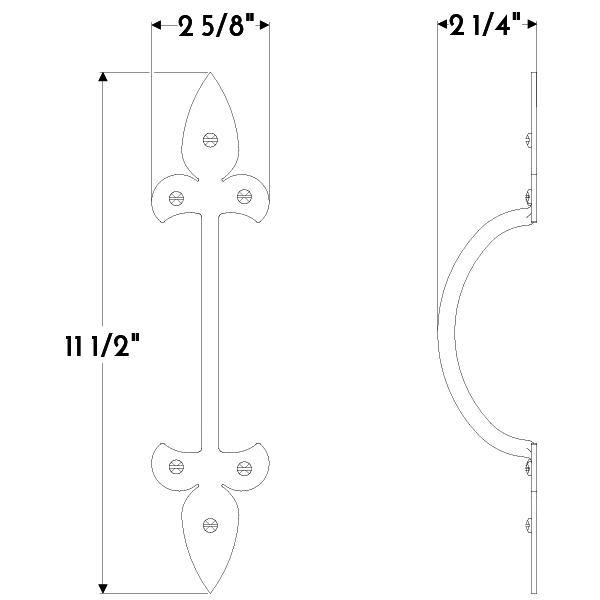 Forged iron fleur-de-lis pull with lift bar and keeper.