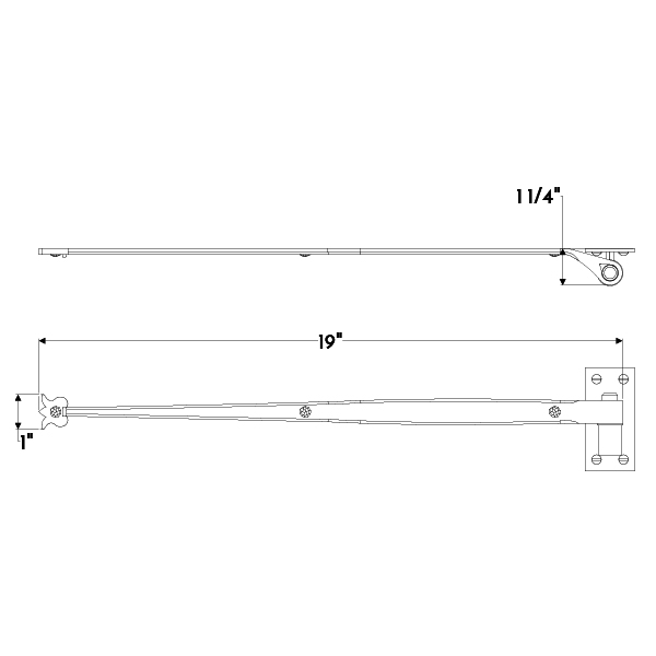 Pair of 19″ forged iron okie style tulip strap hinges.