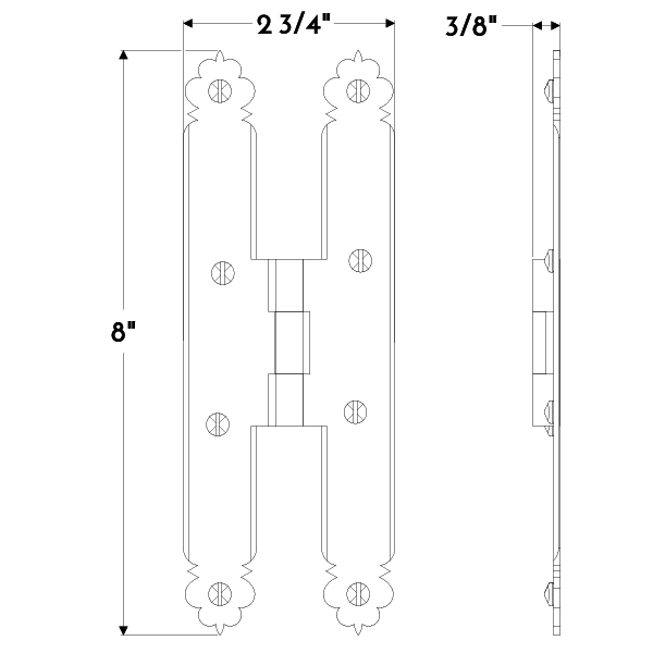 Pair of 8″ forged iron foliated h-hinges.