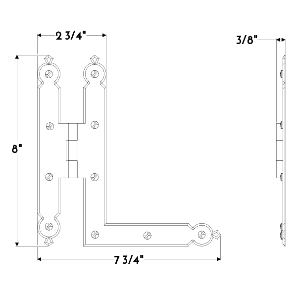 Pair of 8″ forged iron crowned HL-hinges.