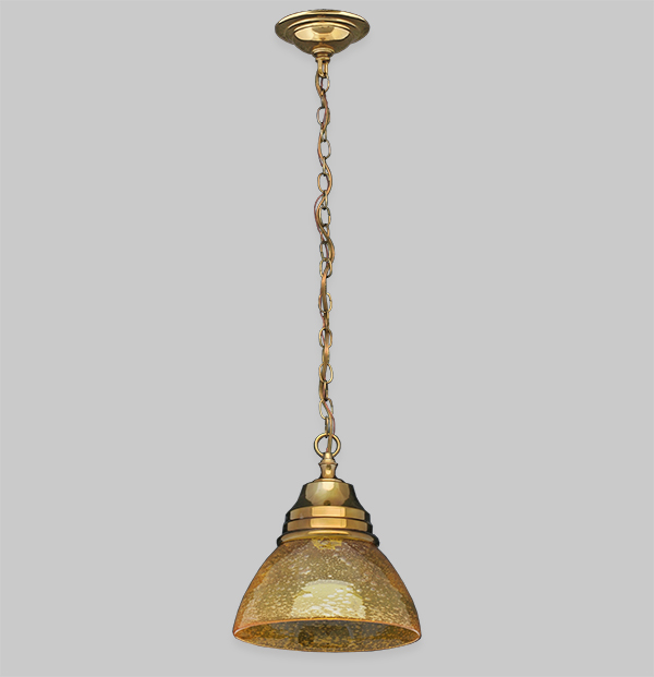 This simple, yet stunning pendant comprises a cast brass canopy, a mouth-blown glass shade, a spun copper holder and the perfect imperfections of a handmade chain.
