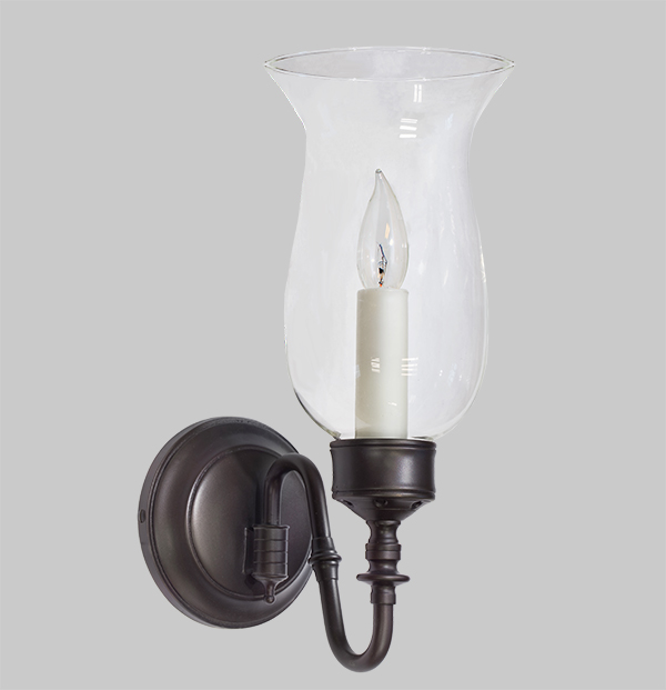 This single arm sconce is handcrafted with fine quality featuring a formed extruded hollow brass arm, turned brass transitional details and a cast backplate.