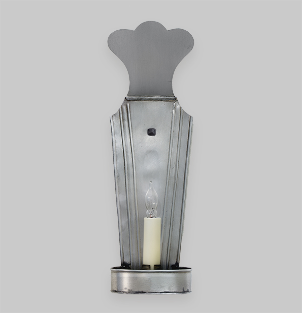 Tin was commonly used for sconces because of its malleability and shiny surface that spread light into dark interiors of early American homes. This sconce was faithfully recreated from the original that hangs in the Tappahannock Room at Winterthur.